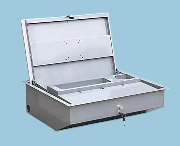 翻轉器采用1.2mm厚優(yōu)質冷軋鋼板,外觀尺寸:565*445*160mm;開孔尺寸:540*420mm。液壓桿采用進口優(yōu)質緩沖氣壓桿,力度為150N。帶鎖帶拉扣雙重保護結構,鎖距尺寸:80mm;拉扣孔距尺寸:53mm;箱體內部含有鍵盤槽、雜物槽與鼠標槽托板,鍵盤槽尺寸:484*160MM(長*寬),鍵盤槽居中頂部帶有直徑2CM的出線孔。雜物槽尺寸:189*75*38MM(長*寬*高),邊角為圓弧處理。鼠標槽型尺寸為:132*75*38MM(長*寬*高),液壓氣桿展開孔距:273mm。